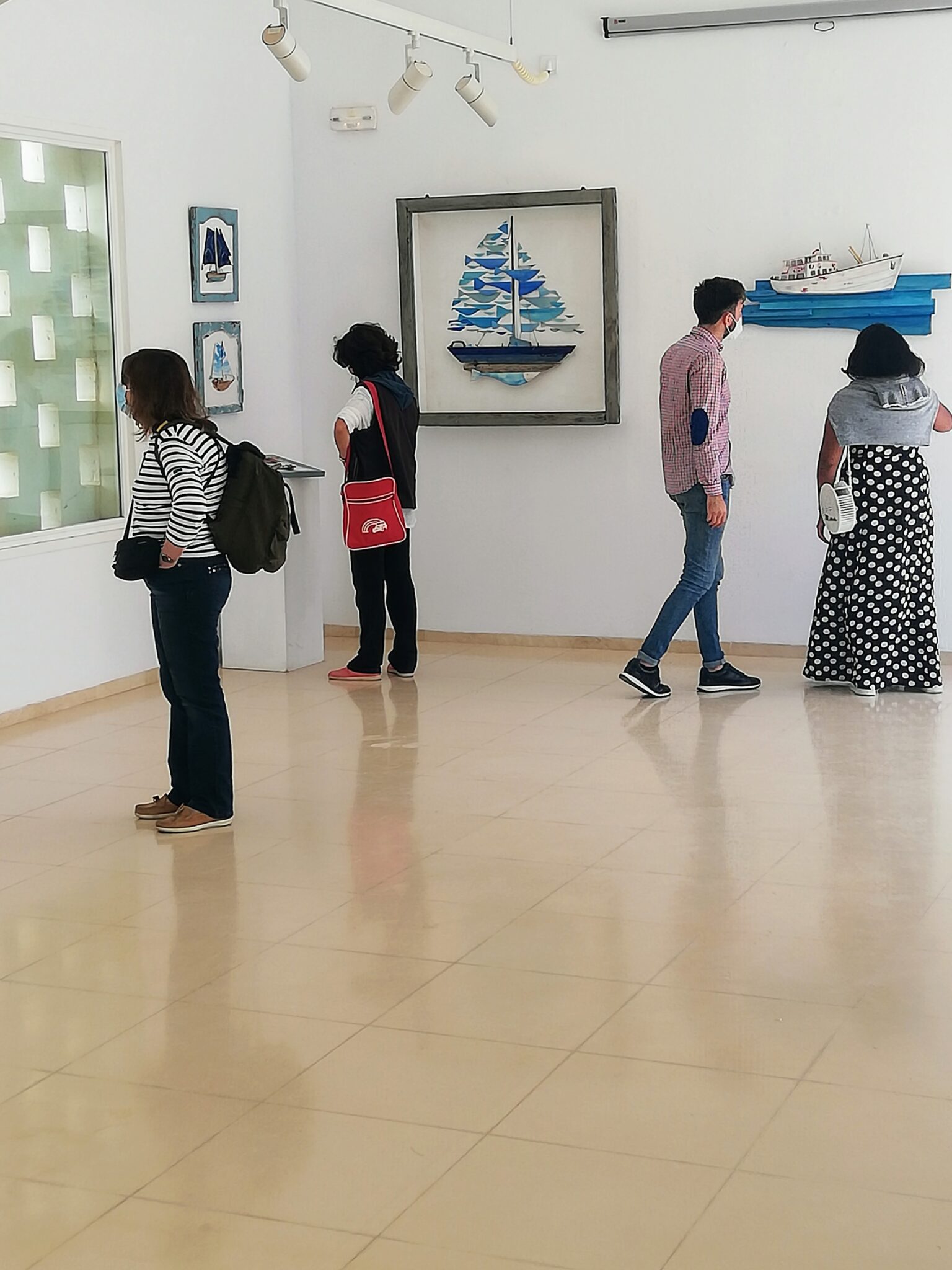 So verbrachte er vier Jahre, bis eines Tages Freunde seine Werke sahen. Das waren herrliche Arbeiten. Nicht einfache Malereien, sondern regelrechte Papierkunst in 3D, Relieves. Und man fragte ihn, warum ein excellenter Meisterschüler der Kunsthochschule Valencia mit beca in Italien/ Neapel Teller wäscht, statt sich seiner eigentlichen Berufung, der Kunst zu widmen. Seine ersten Werke wurden bereits verkauft. Und so sprang Lucas vor acht Jahren ins kalte Wasser, um sich als selbständiger Künstler auf Formentera niederzulassen. Und der Erfolg ließ nicht auf sich warten. Zuerst waren es kollektive Ausstellungen, an denen er teilnahm, denn inzwischen hatte er sich in die Künstlergruppe Formenteras integriert.