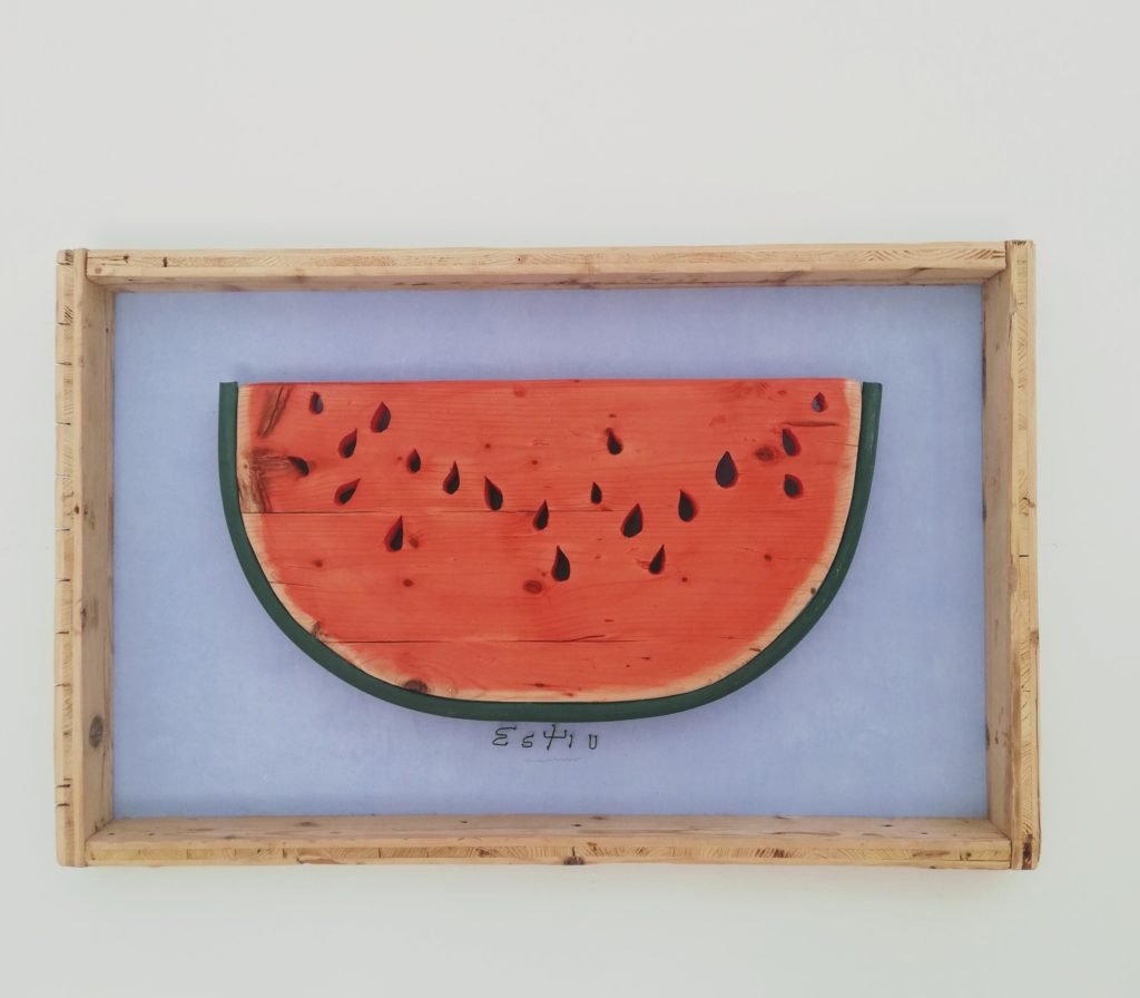 Eine originelle Eintragung in einem kleinen ausliegenden Gästebuch hat sofort meine Aufmerksamkeit erregt. Eine Besucherin wurde von den Melonen-Motiven in der Covid-Zeit mit Maskenzwang inspiriert. Hier ihre Idee und die gleichzeitige Anerkennung der herrlichen Exposition von Anna Ametller.