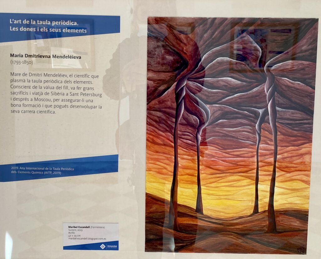 32 Künstler gestalteten mit ihren Werken den jeweiligen Lebenslauf einer Wissenschaftlerin. Maribel Escandell, Formentera ist eine der Künstlerinnen, die für dieses Kunst-Projekt ausgewählt wurde. ( Foto rechts).