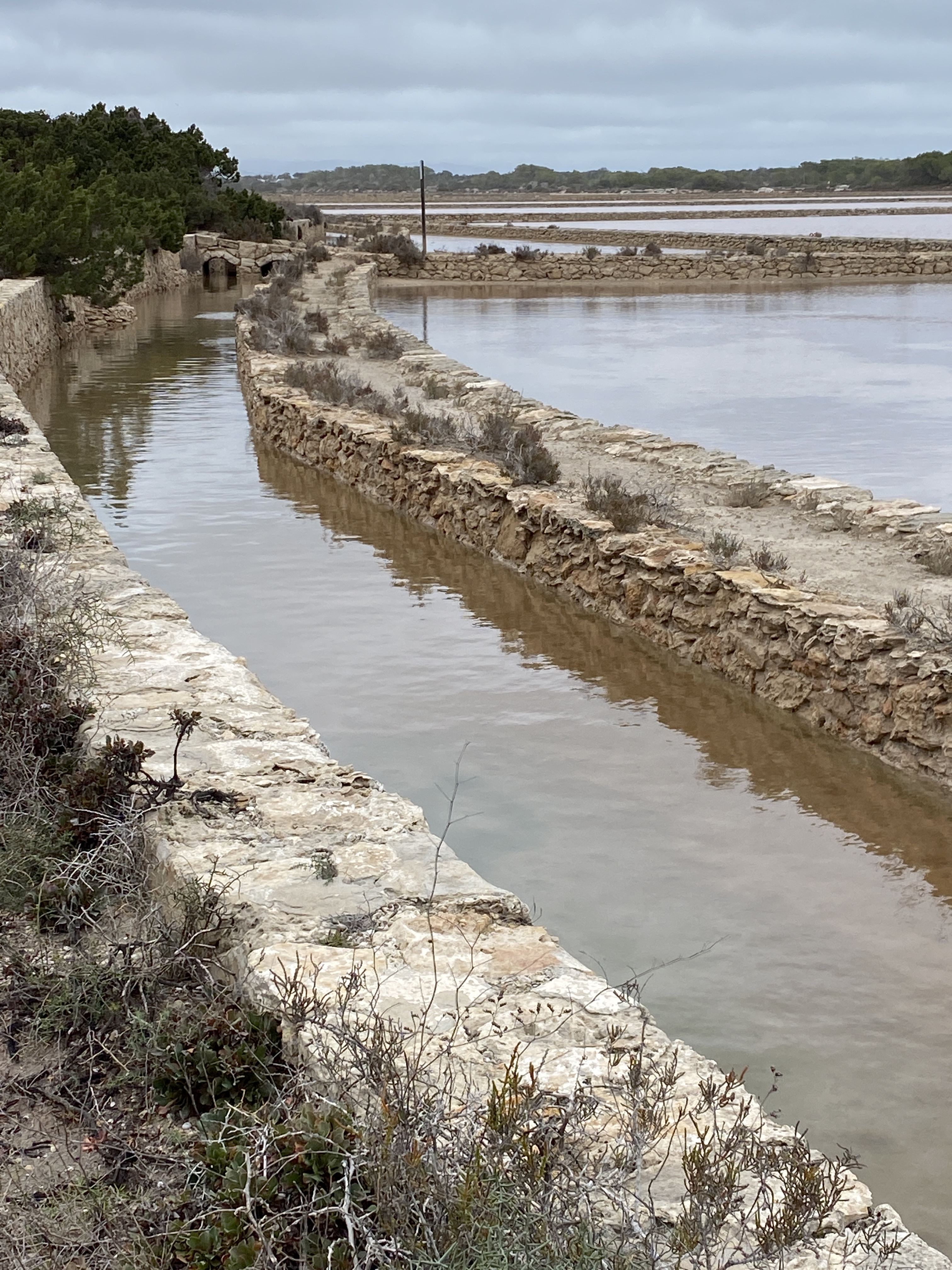 Wenn man hier wohnt, sehen die Fotoalben immer aus, als seien wir permanent in den Ferien. Aber auch hier gibt es einen Alltag. Jetzt nach den Feiertagen kam auch promt der formenterensische Winter. Seit Jahren äußert er sich in schweren Stürmen. Aber dieses Jahr auch mit willkommenem Regen. Heute hat es gerade mal aufgehört und schon versuchte die Sonne, sich wieder durchzukämpfen. Das war der Moment, dass ich mal in den Naturpark der Salinen gegangen bin, um Euch ein paar Fotos zu posten. Schön die Natur dort. Aber man ahnt auch die viele Arbeit und sicher auch Kosten, um die Salinen wieder zur Produktion des berühmten Formentera-Salzes anzukurbeln