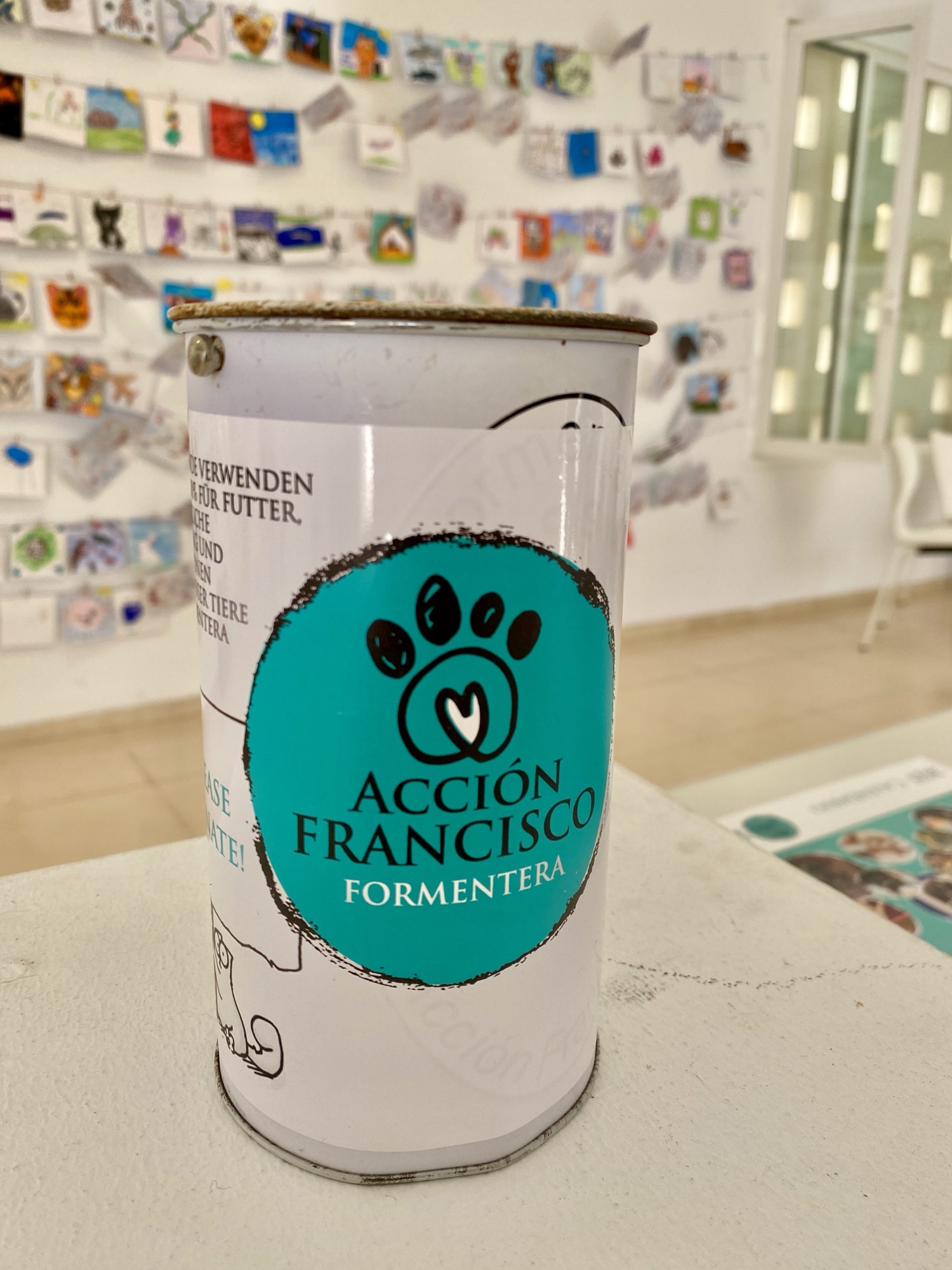 Eine gelungene Ausstellung ging zuende. Man hat mit dem Verkauf der Postkarten, Kalender und der Werke von Sol Courréges und Nicolas Maas 1000€ erzielt. Aber das ist nur das Futter für ca. einen Monat. Man braucht mehr. Deshalb bittet man um kleine Beiträge für die Spendendose, die man in fast allen Geschäften der Insel findet.