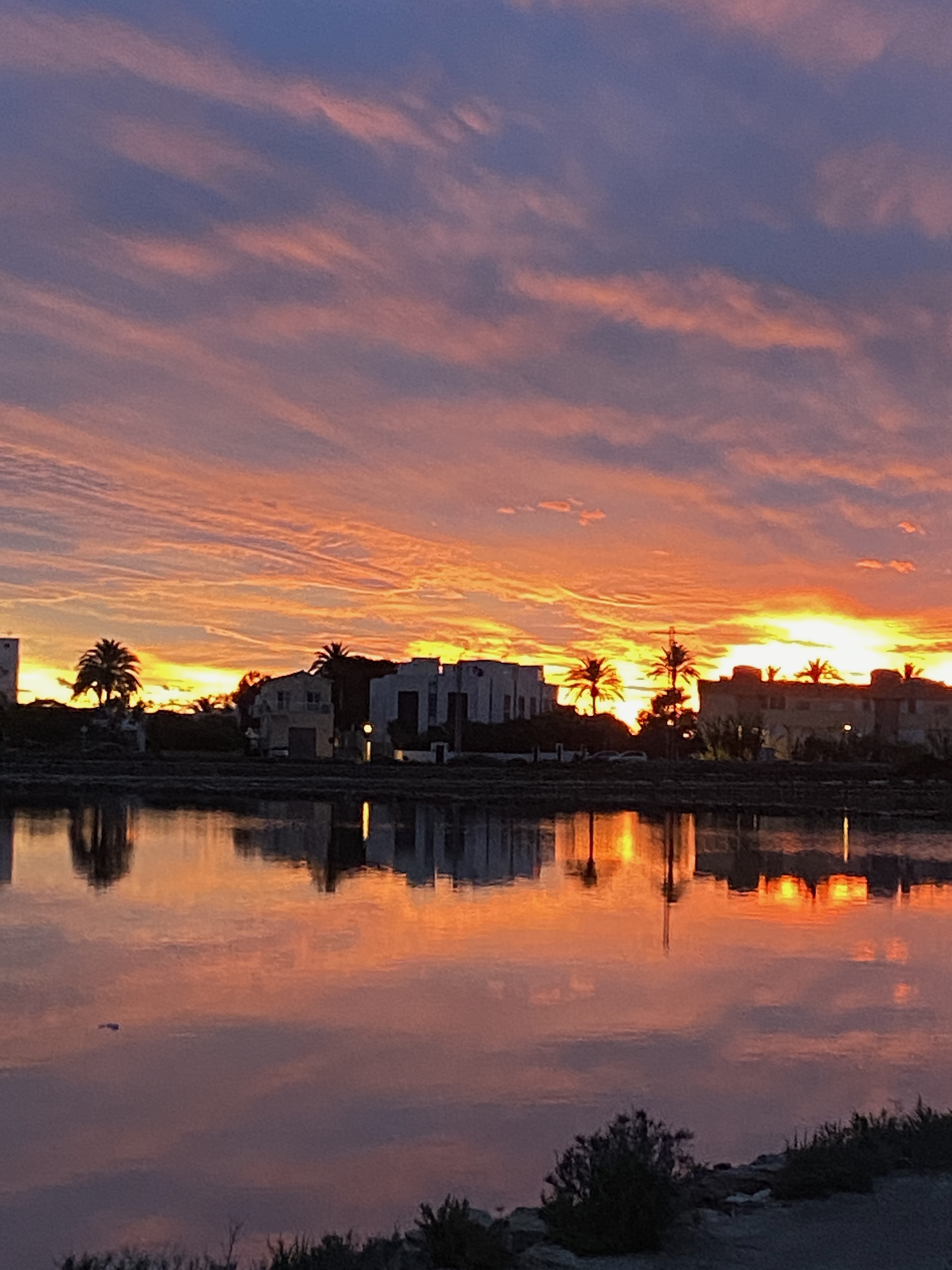 Ein Naturschauspiel ohnegleichen. Fast ist es schon Nacht, da schieße ich schnell noch ein Foto mit den Reflexen in den Salinen.